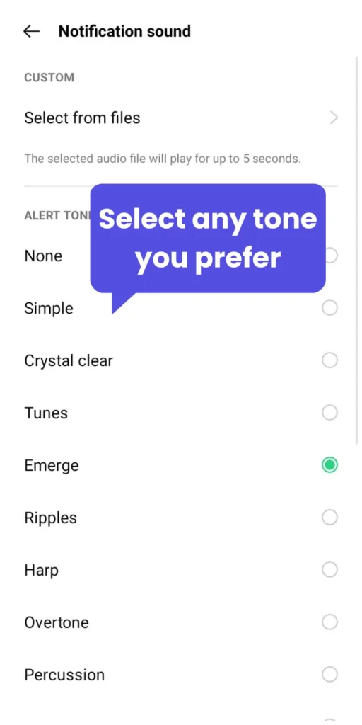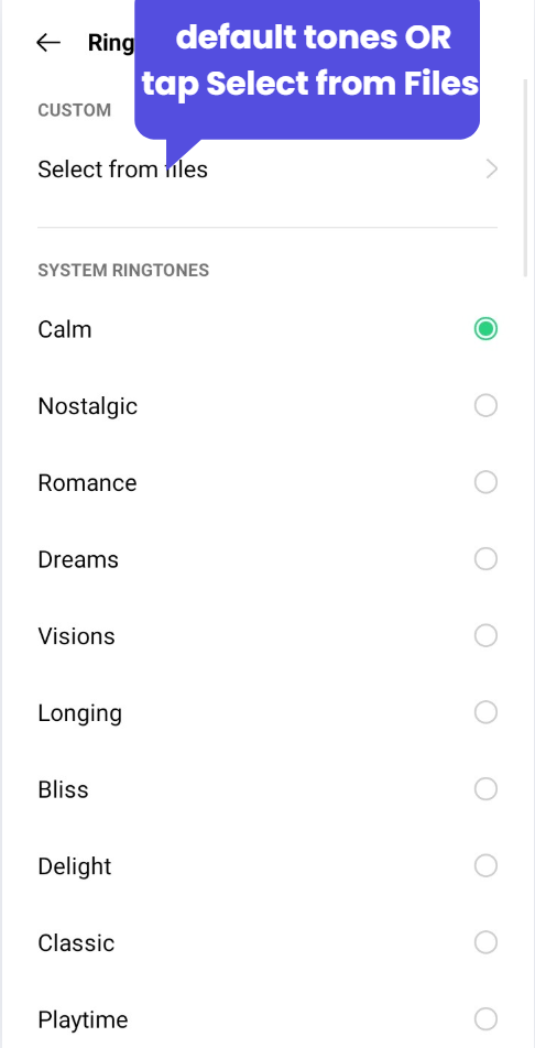 Choose from the default tones OR tap Select from Files to use a custom sound.